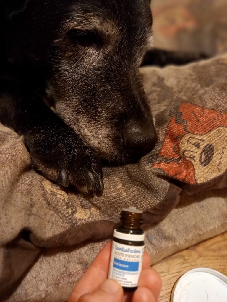 Ver la capacidad de los perros de seleccionar el remedio que más urgente es para ellos es una pasada. Ya que en la zoofarmacognosis aplicada lo que hacemos es ofrecerle al perro un abanico de remedios naturales (macerados, aceites esenciales y hierbas secas) en un orden establecido y permitirle que nos indique cuál es el que necesita y cuál no.
